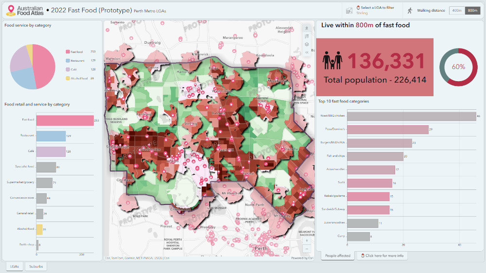 The Australian Food Atlas offers a suite of interactive dashboards that display food business information and present key insights into local food environments, including: